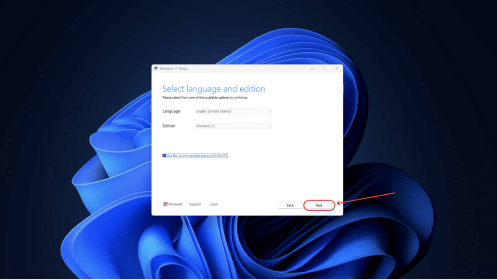 ขั้นตอนที่ 4 เลือก Use the recommended options for this PC และ กด Next