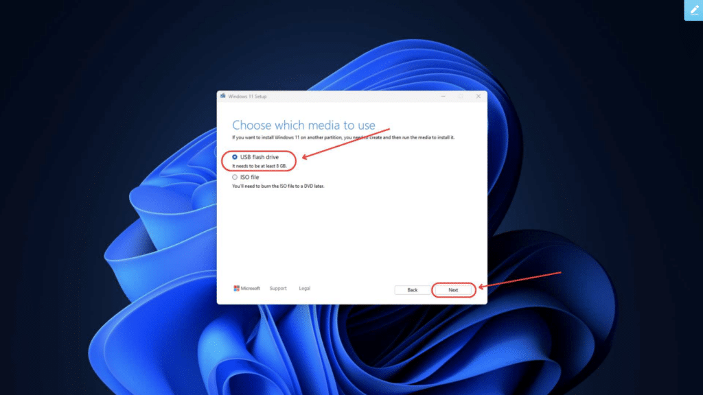 ขั้นตอนที่ 5 เลือก USB flash drive และ กด Next