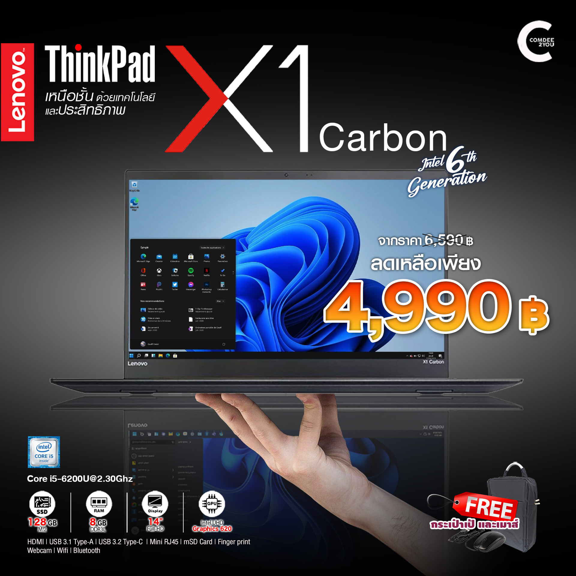 Lenovo ThinkPad X1 Carbon | 14" FHD IPS | Intel Core i5-6200U | RAM 8GB | 128GB SSD | Windows 11 Pro