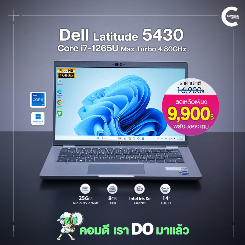 Dell Latitude 5430 | 14″ FHD | Intel Core i7-1265U | RAM 8GB | SSD 256GB | HDMI | USB Type-C | Windows 11Pro | มือสองสภาพดี