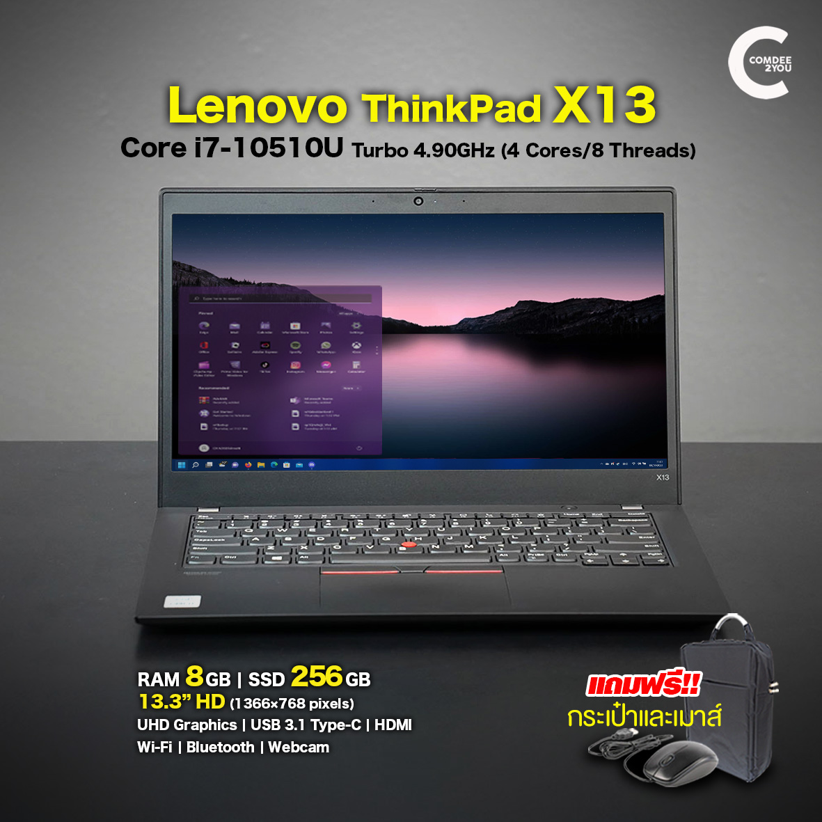 -29%โน๊ตบุ๊ค Lenovo ThinkPad X13 มือสอง ประมวลผลด้วย Intel Core i7 10th Gen ความจำเครื่อง 256GB ในรูปแบบ SSD