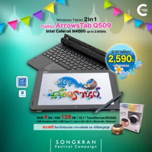 Fujitsu ArrowsTab Q509 | 10.1 นิ้ว (1920×1200) | Intel Celeron N4000 | RAM 4GB | 128GB SSD | Windows 11Pro | มือสอง