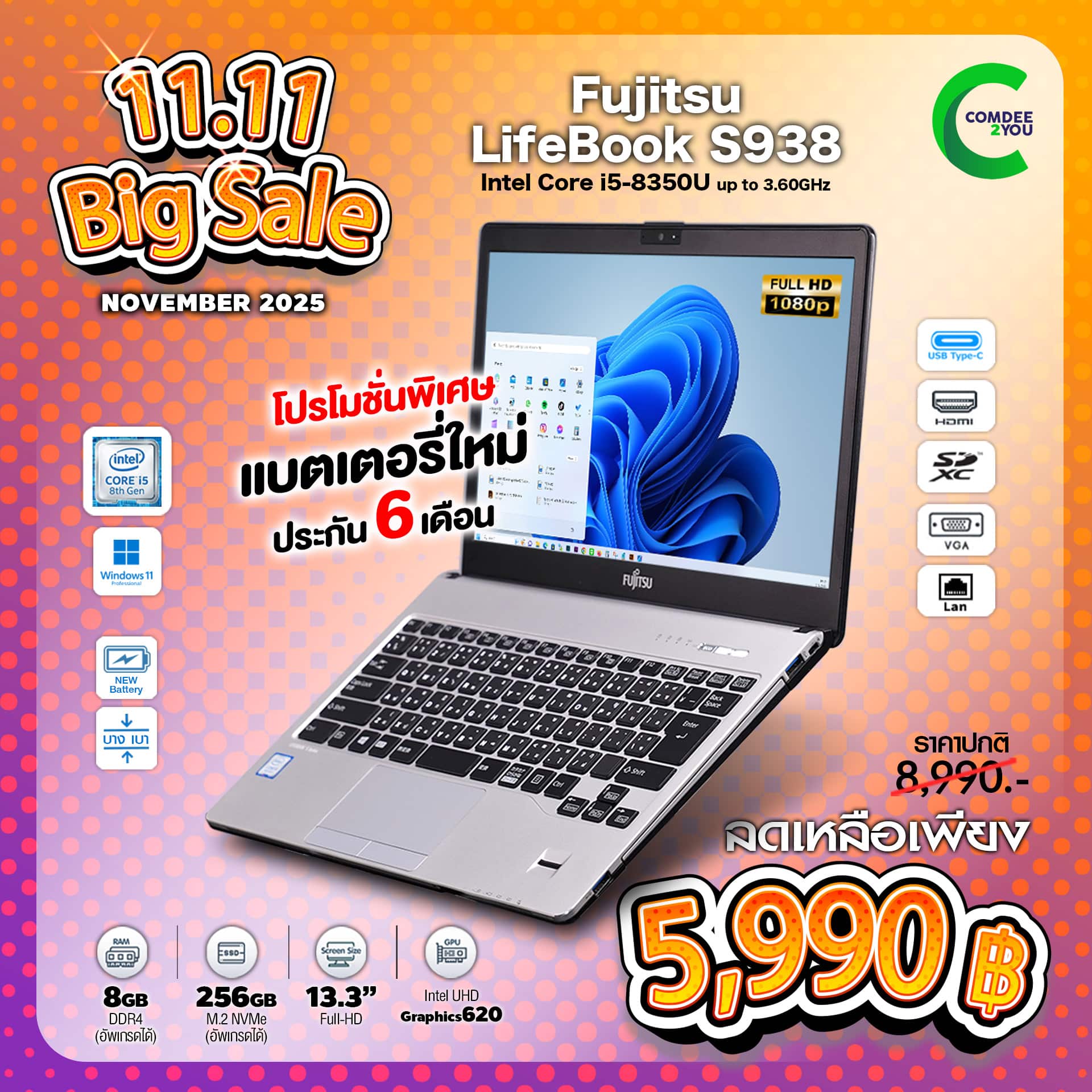 - คุณสมบัติอาจจะมีการเปลี่ยนแปลง โดยมิจำเป็นต้องแจ้งให้ทราบล่วงหน้า กรุณาสอบถามได้ที่ Line: @comdee2you
