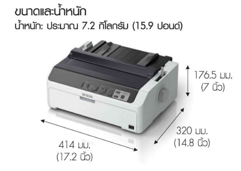 Printer Dot Matrix EPSON LQ-2090II-ของใหม่ | SIDM 24 เข็มพิมพ์ | 360×360 dpi | ความจำ 128 KB | ความเร็วในการพิมพ์ 487 ตัวอักษรต่อวินาที